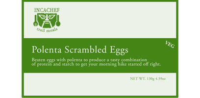 We mix beaten eggs with polenta to produce a tasty combination of protein and starch to get your morning hike started off right.